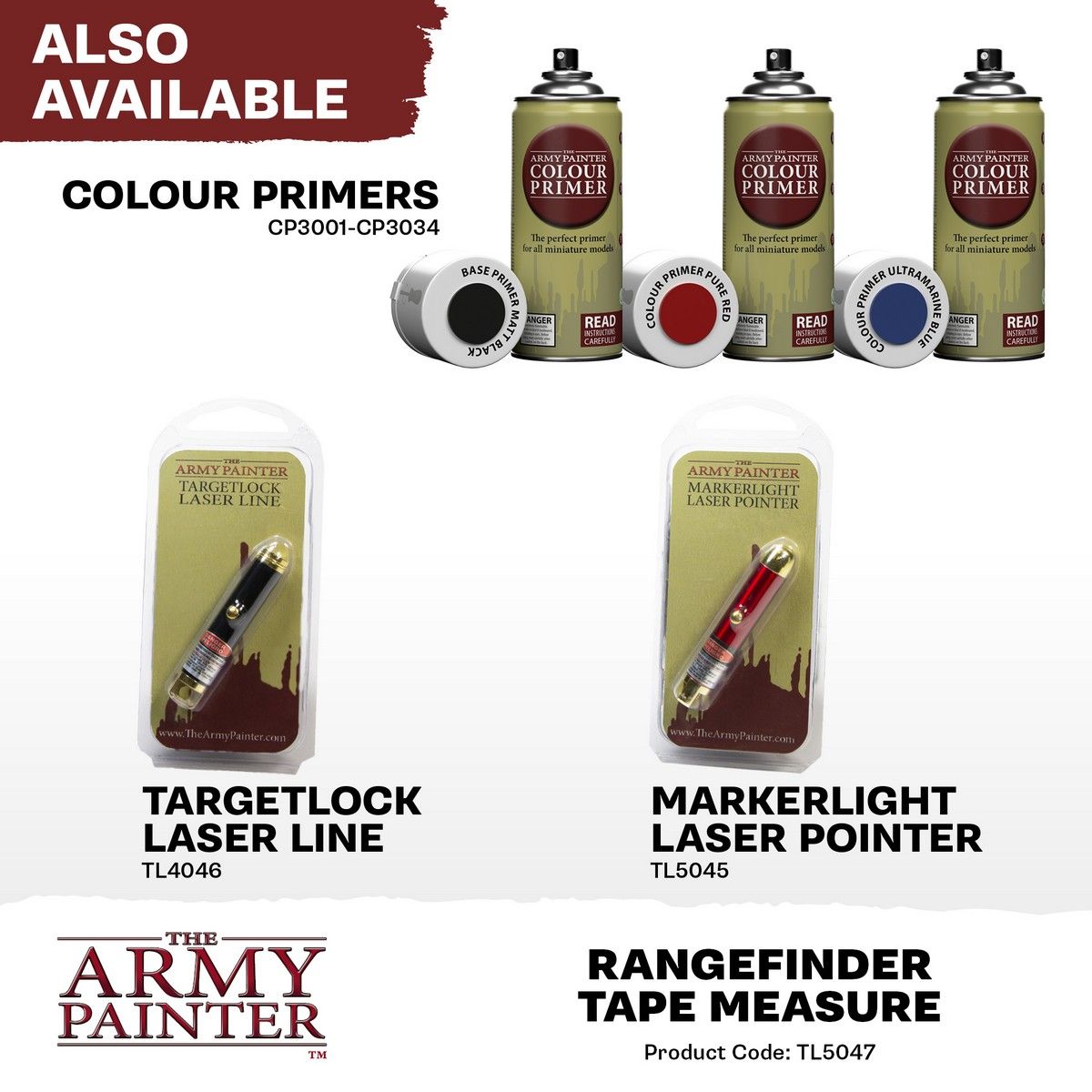 Army Painter Rangefinder Tape Measure is a compact measuring tool designed for tabletop gaming. It allows players to quickly measure movement and distances during Warhammer battles.
